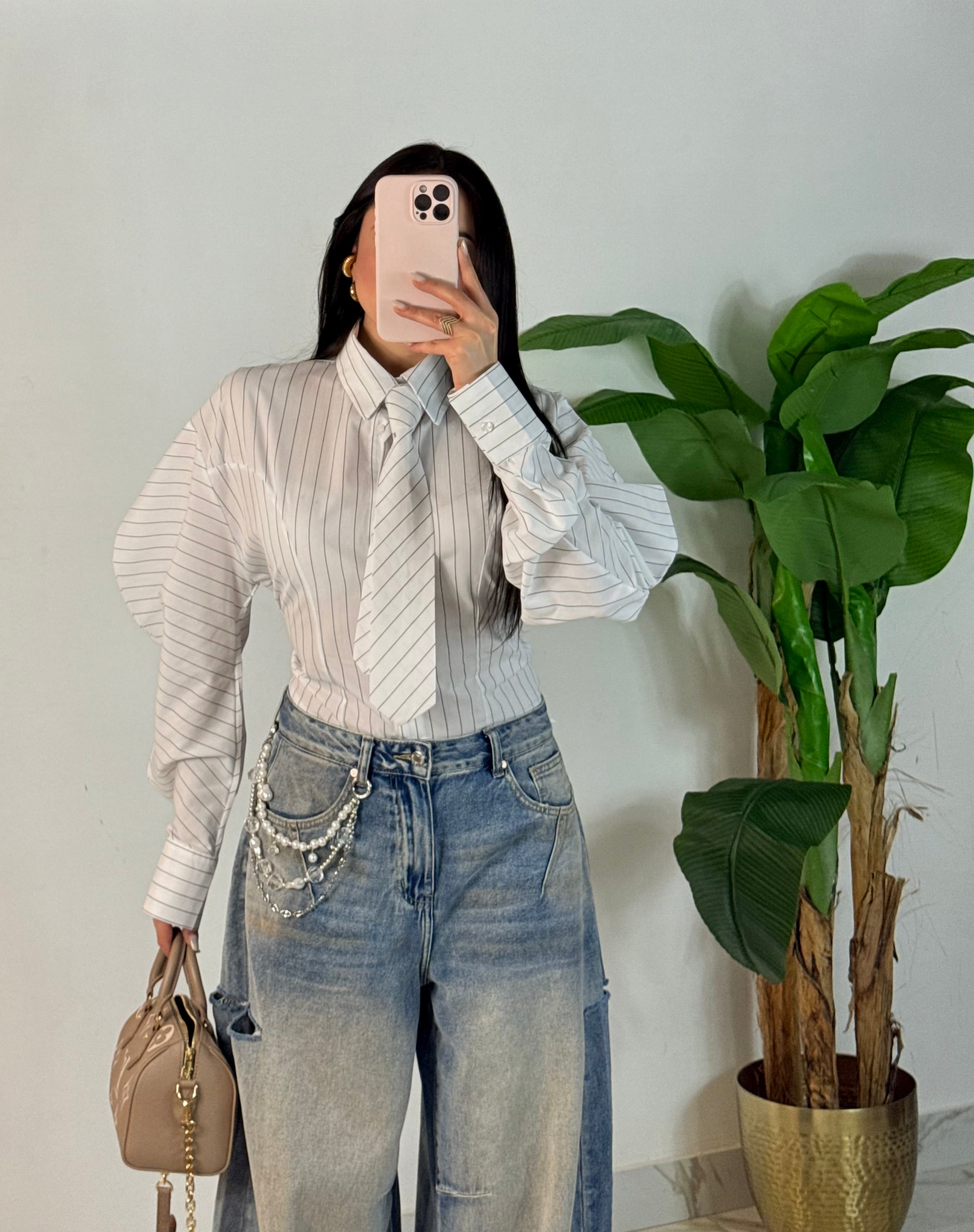 Camicia “Gessata”con cravatta (Justwest)