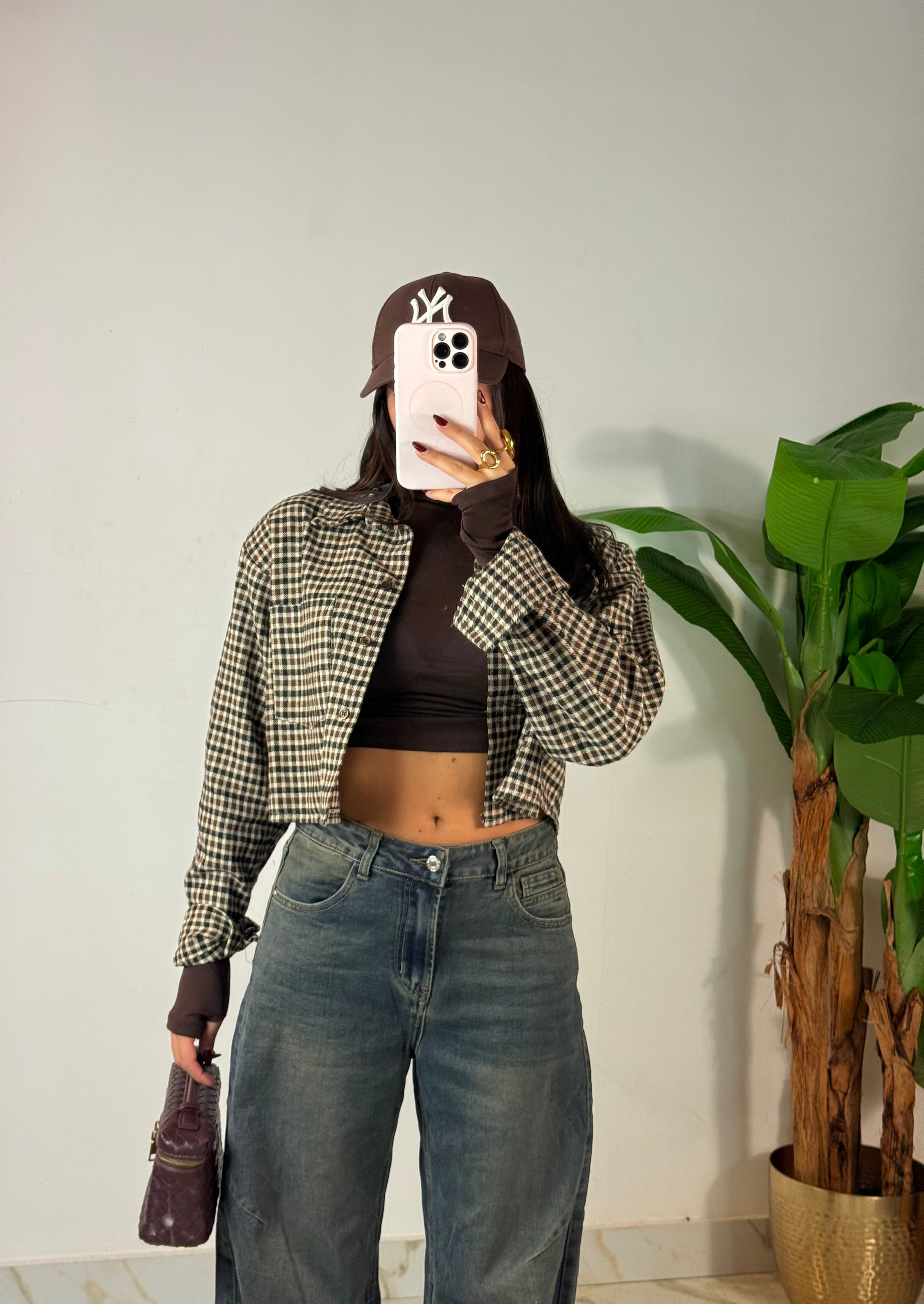 Camicia crop a quadri
