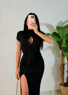 Il dress é taglia unica e veste da una 38 a una 44/46 .